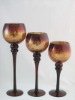 Glass candle holder Set of three crackled glass candle holder w/gradient brown color Size: D13 x H30/35/40cm Packing: Polyfoam box & Brown Carton